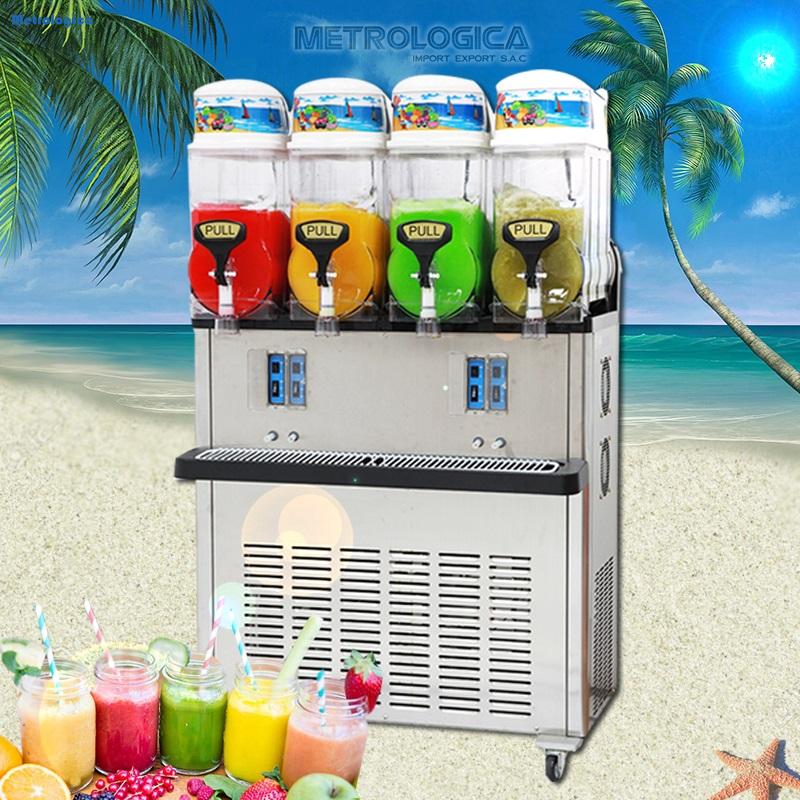 Cremoladera para negocios, alta producción 04 tolvas de alta capacidad. Producción: Contenedor cuádruple, puede servir granita o smoothies Contenedor: Individual, 12 litros (3.17 galones) de capacidad, Capacidad máxima de llenado de 9 litros (2.38 galones) y Policarbonato no tóxico e irrompible Control de enfriamiento y congelación Sistema de control de corte para congelamiento, Control de temperatura para enfriamiento (control PCB eléctrico para eficiencia de energía) Nivel de congelamiento ajustable Tornillo de control de enfriamiento (niveles 1 -4) Motor reductor metálico de larga duración Engranajes metálicos para vida y confiabilidad prolongada Exterior Cuerpo de acero inoxidable para vida prolongada y Swichs frontales de fácil acceso CARACTERISTICAS: Capacidad del Tanque (litro (galón)) 9 Litros(2.38galones) X 4 Consumo de Energía (W) 2,000W Compresor (HP) 0.85HPX2EA Refrigerante R404A Opción de Voltaje (V / Hz / Ph) 208~230V/60Hz, 220~240V/50Hz Dimensiones (WxDxH / mm / pulg) 800x480x1680mm (31.5x18.9x66.1pulg) Peso (kg (lbs)) 160kg (352.8lbs) contamos con stock de repuestos y servicio técnico para todo el PERÚ.