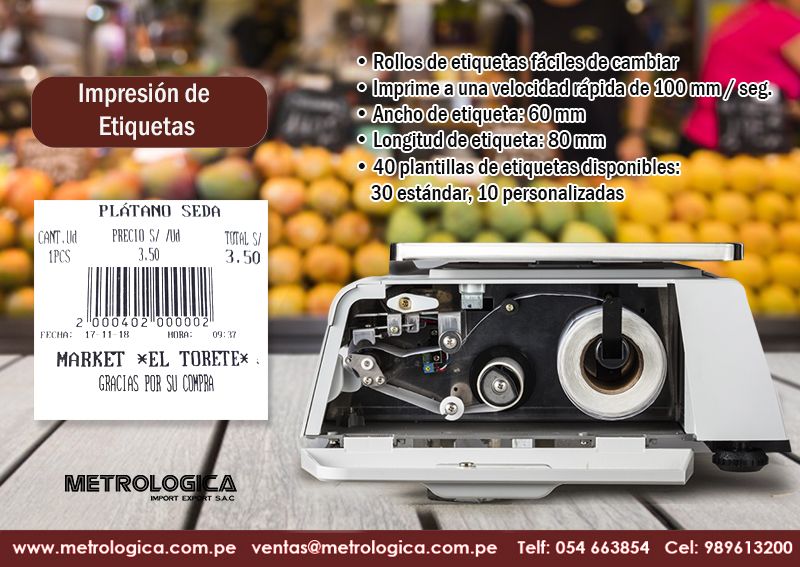 Es una Balanza Electrónica que te ayuda a tener un mejor control de tus productos cual sea tu negocio, ya que no solo pesa tu producto si no que posee una memoria interna con el precio, calculando el valor de la cuenta que se genera. Esta balanza imprime tickets y etiquetas que podrás pegarlas en tu producto. Estas etiquetas contienen el nombre de tus productos, su peso, precio, etc.